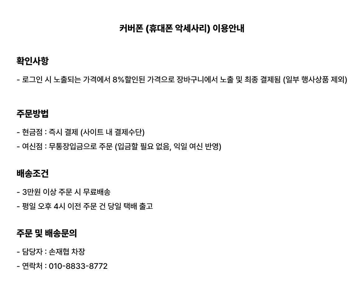 커버폰 (휴대폰 악세사리) 이용안내