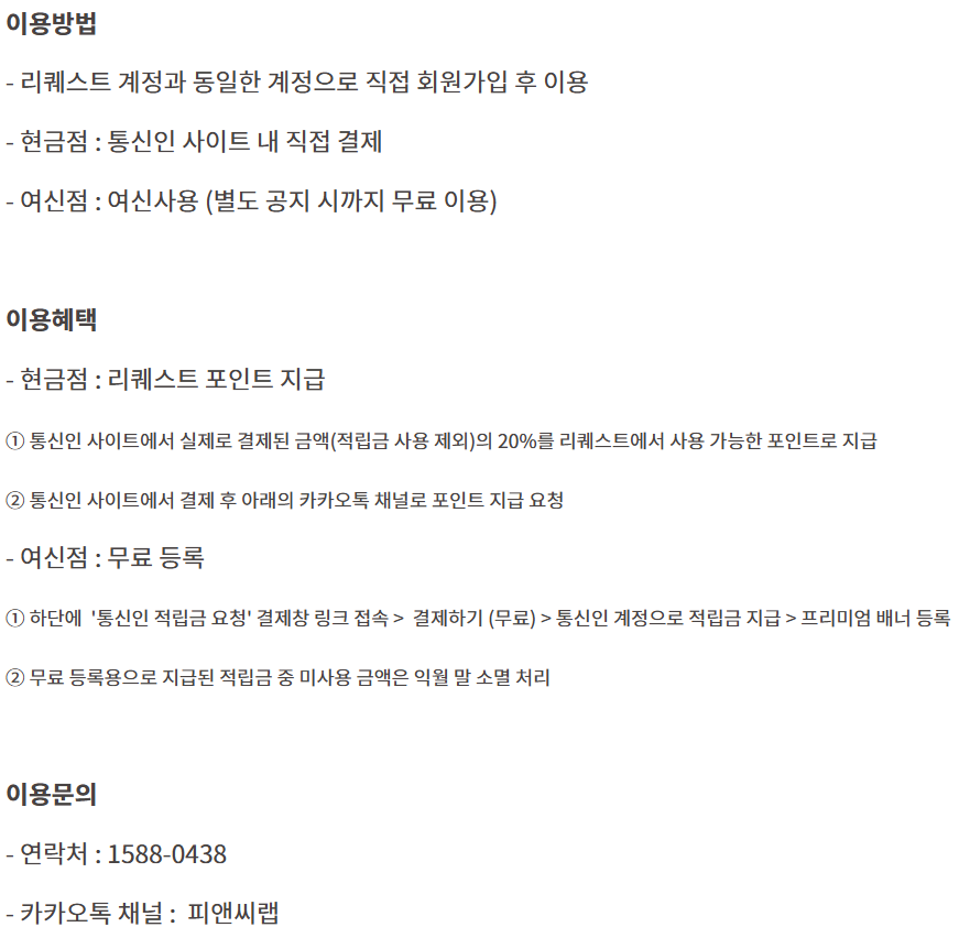 결제창 (통신인 적립금 요청) 바로가기